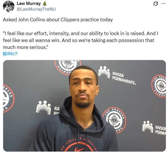 谈及保罗,科林斯表示:不管出于什么原因,这次合作没能如愿走到最后。但他是我一直敬仰的人—— 维克森林大学校友,快船队的传奇。甚至在我被选中之前,我们就已经有了交集。所以我对我的兄弟CP只有爱与尊重。今天他不在队里,更衣室确实安静了不少。我就说这些吧,祝愿他未来无论选择做什么,都一切顺利。