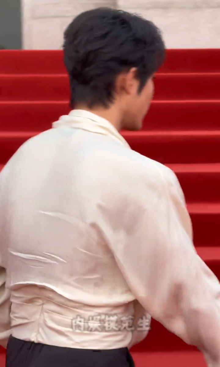 在短剧里有多帅不得而知,但这次在红毯上真让人眼前一黑,穿着一件白色的衬衫露了大半个胸脯,可衣服质感太差,一转身,皱皱巴巴的,比影楼里供客人反复拍照的服装还拉胯。