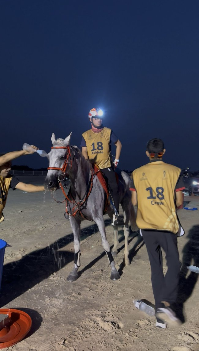本次比赛全程119公里,当地时间16:00起跑,次日凌晨3时29分结束。赛道漫长,夜色与风沙交织,气候与环境的变化给人马带来极大挑战。 面对陌生的环境和重重的考验,中国队年轻骑手们展现出非凡的不言败精神。他们在黑夜中与时间、与自我较量,用毅力与信念支撑每一次跨越。每一程汗水与坚持,都是成长的印记。在赛程最后阶段,年仅15岁的运动员何润庚,在马匹体力已达极限的情况下,毅然选择与马并肩奔跑,徒步陪伴近10公里。他的坚持与执着感染了在场的工作人员和其他国家队选手。