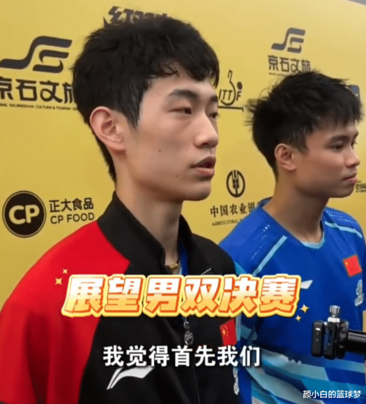 本次男双国乒派出王楚钦/林诗栋、徐瑛彬/袁励岑、向鹏/薛飞、温瑞博/黄友政、周启豪/陈俊菘5对组合,最终王楚钦/林诗栋、周启豪/陈俊菘会师决赛,周启豪/陈俊菘在半决赛中3-1击败了日乒组合松岛辉空/户上隼辅,陈俊菘表示守好我们的半区已经算成功了,决赛的对手很强我们只能去拼。